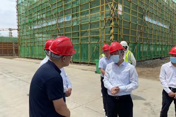 6月7日上午,蚌埠市市長(zhǎng)操龍燦、常務(wù)副市長(zhǎng)葛銳、市政府秘書(shū)長(zhǎng)劉宗文、副秘書(shū)長(zhǎng)張斌、市發(fā)改委主任陶廣生、市農(nóng)業(yè)農(nóng)村局局長(zhǎng)李勇一行來(lái)到禹會(huì)區(qū)馬城鎮(zhèn)蚌埠市糧食局第三倉(cāng)庫(kù)項(xiàng)目建設(shè)現(xiàn)場(chǎng)調(diào)研。禹會(huì)區(qū)區(qū)長(zhǎng)王啟衛(wèi)、副區(qū)長(zhǎng)陳光華、區(qū)發(fā)改委、區(qū)政府辦及禹投集團(tuán)、糧食三庫(kù)等相關(guān)負(fù)責(zé)同志陪同。