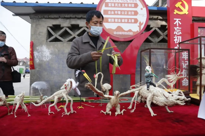 啟動儀式后,志愿者現(xiàn)場開展理發(fā)、測量血壓、家電維修、安全宣傳、反詐宣傳、個稅咨詢、健康咨詢、創(chuàng)業(yè)就業(yè)政策宣傳等志愿服務(wù)活動。團(tuán)區(qū)委、長青中心校、區(qū)文化館等單位在現(xiàn)場展示了剪紙、草編、糖畫、面塑等非遺項目,別具特色的非遺展示吸引了大量群眾駐足圍觀。同時,現(xiàn)場舉辦的文藝表演獲得了村民們陣陣掌聲。